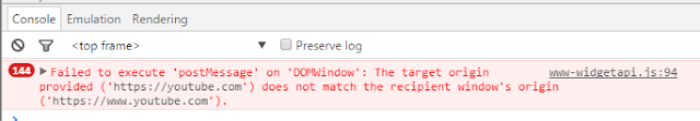 Failed to execute 'postMessage' on 'DOMWindow': The target origin provided ('https://youtube.com') does not match the recipient window's origin ('https://www.youtube.com').