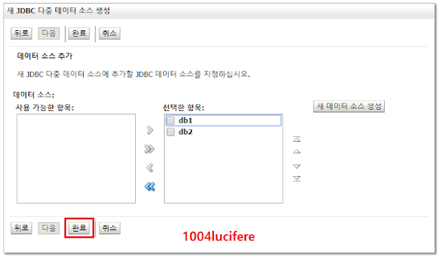 * 다중데이터소스까지 추가 구성하려면 대상 매니지드서버(Managed Server)를 필수로 선택해야 한다.